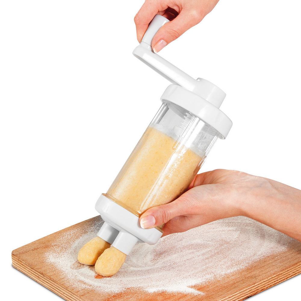 不管是下午嘴饞時突然想來點鹹甜好滋味,抑或朋友登門來訪一起 DIY 同樂,您會需要此款麵糊器組來大顯身手。旋轉把手將填入的麵糊、餡料擠出,五種不同模片可擠出不同形狀、大小之麵糊,可用於製作馬鈴薯麵、油炸甜甜圈、吉拿棒等獨具特色的異國美食,讓您用味蕾環遊世界。