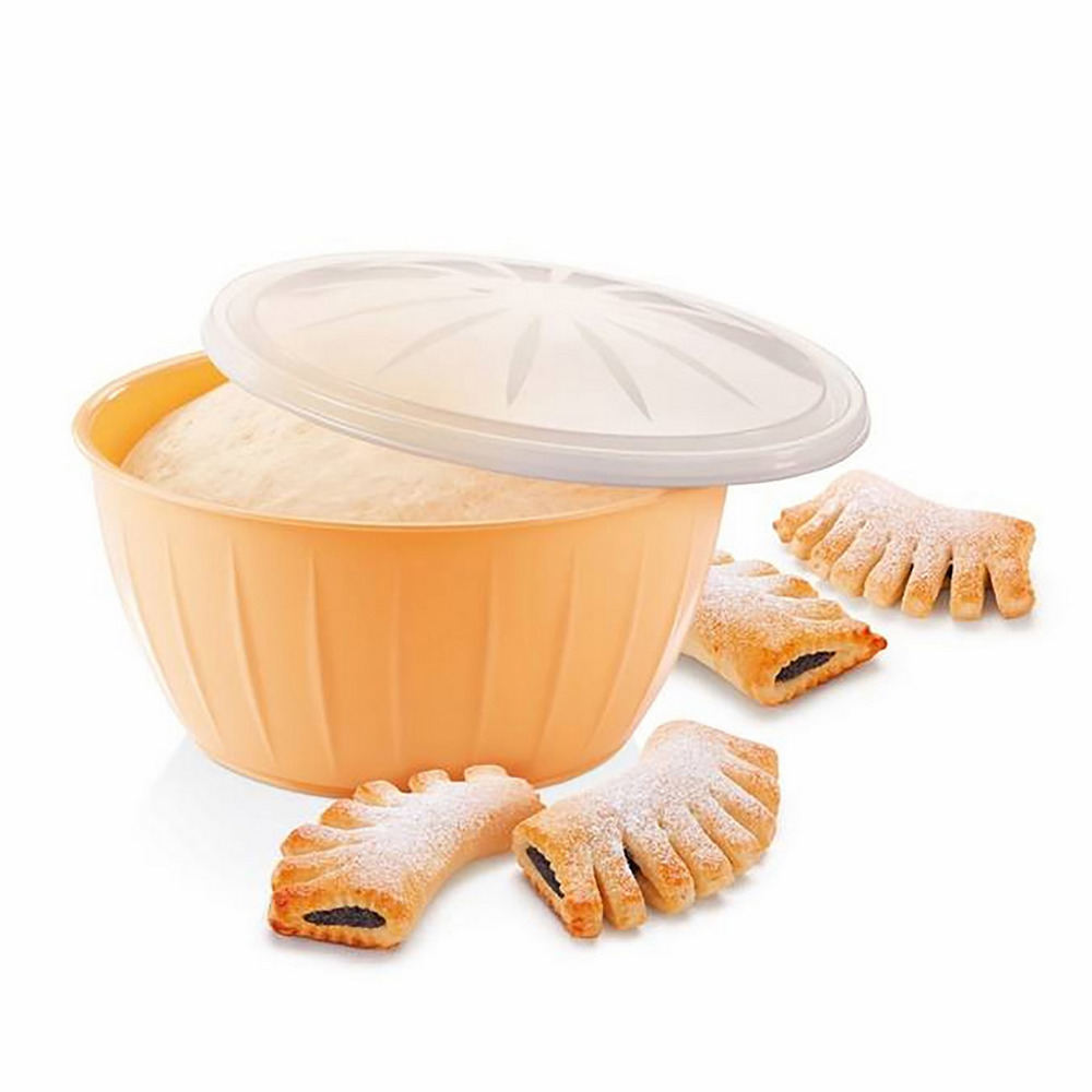 本商品一組含發酵碗 (容量約 3000 ml)、上蓋、凝膠暖墊、底座各 x 1。凝膠暖墊請搭配底座一同微波 (僅適微波 700 W 加熱 45 秒),烘焙碗及上蓋僅適常溫使用;凝膠暖墊與上蓋適用手洗清潔、烘焙碗及底座適用洗碗機,並皆保持乾燥。使用時請參考原廠說明書。悠閒的下午就來做麵包吧,看著熱騰騰的歐式麵包出爐,心情都好起來了。此款發酵碗可用於多種用途如秤重、攪拌、揉麵糰、發酵。大口徑的發酵碗方便攪拌糖粉、蛋、酵母與麵粉等食材 (建議使用適合不沾鍋具的彈性刮刀、料理匙攪拌),也可直接在碗內做揉麵的動作;蓋起上蓋時請確保邊緣皆與發酵碗緊密結合,即可拿起發酵碗做上下搖晃的動作,再次使食材確實的均勻混合;搖晃結束後,請將上蓋先行打開一小開口,並以雙手手指從上蓋中心點下壓造成凹陷,預留麵糰膨脹時與空氣的擠壓空間,再確實蓋上與發酵碗緊密結合,促進麵糰的發酵作用,降低發酵所需的時間;搭配微波後的凝膠暖墊和底座,放置於底部並結合發酵碗,即可提供麵糰一個溫暖的發酵環境,加速發酵的時間;麵糰發酵後,會因體積的增加,擠壓發酵碗內原有的空氣,使上蓋向上隆起,即發酵完成,便可取出加以整型、烘烤。底座兩側把手方便您端拿,讓您輕鬆享受美好的手作時光。