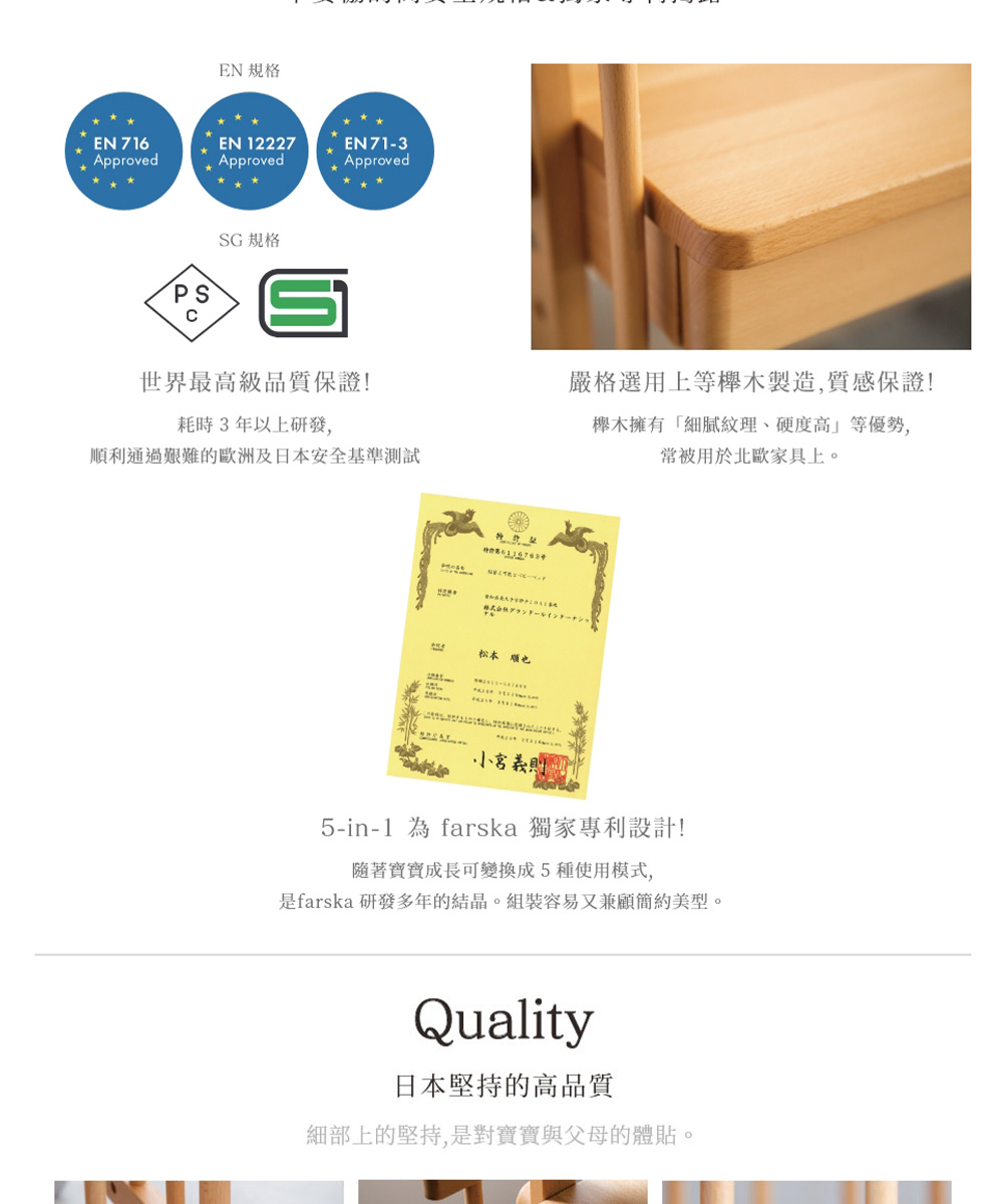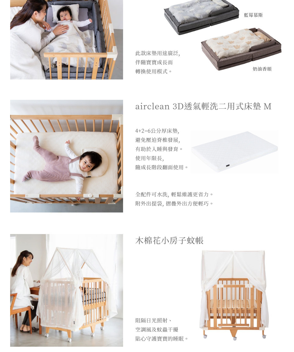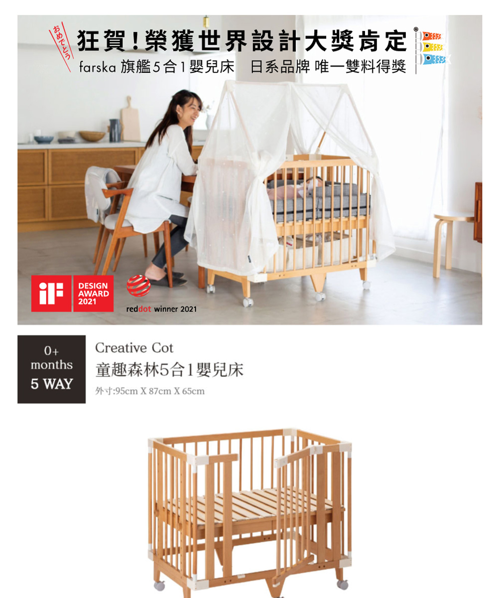 Farska 童趣森林5合1嬰兒床1+4 種旗艦版使用方式,嬰兒床、圍欄、兒童繪畫桌、沙發、成人書桌,變化無需另購配件,隨貨全配到好。