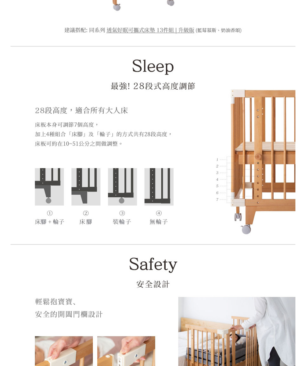 3. 28 段式調節高度,隨時側身照護寶寶。