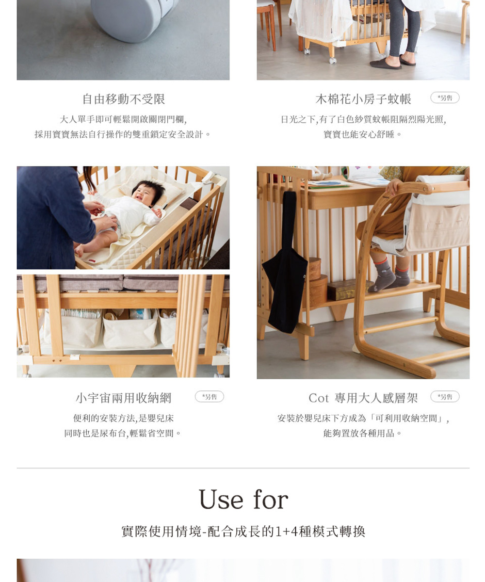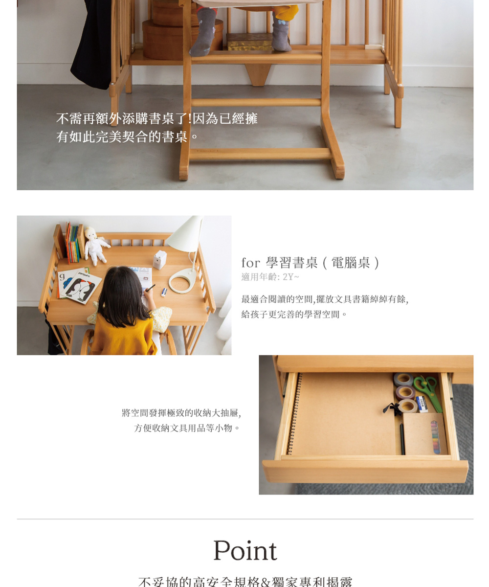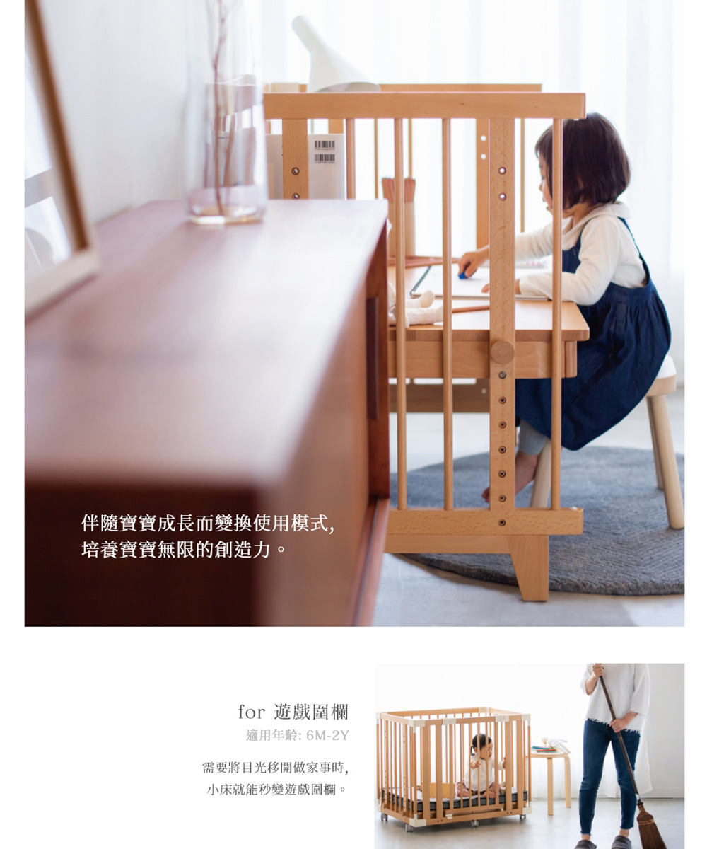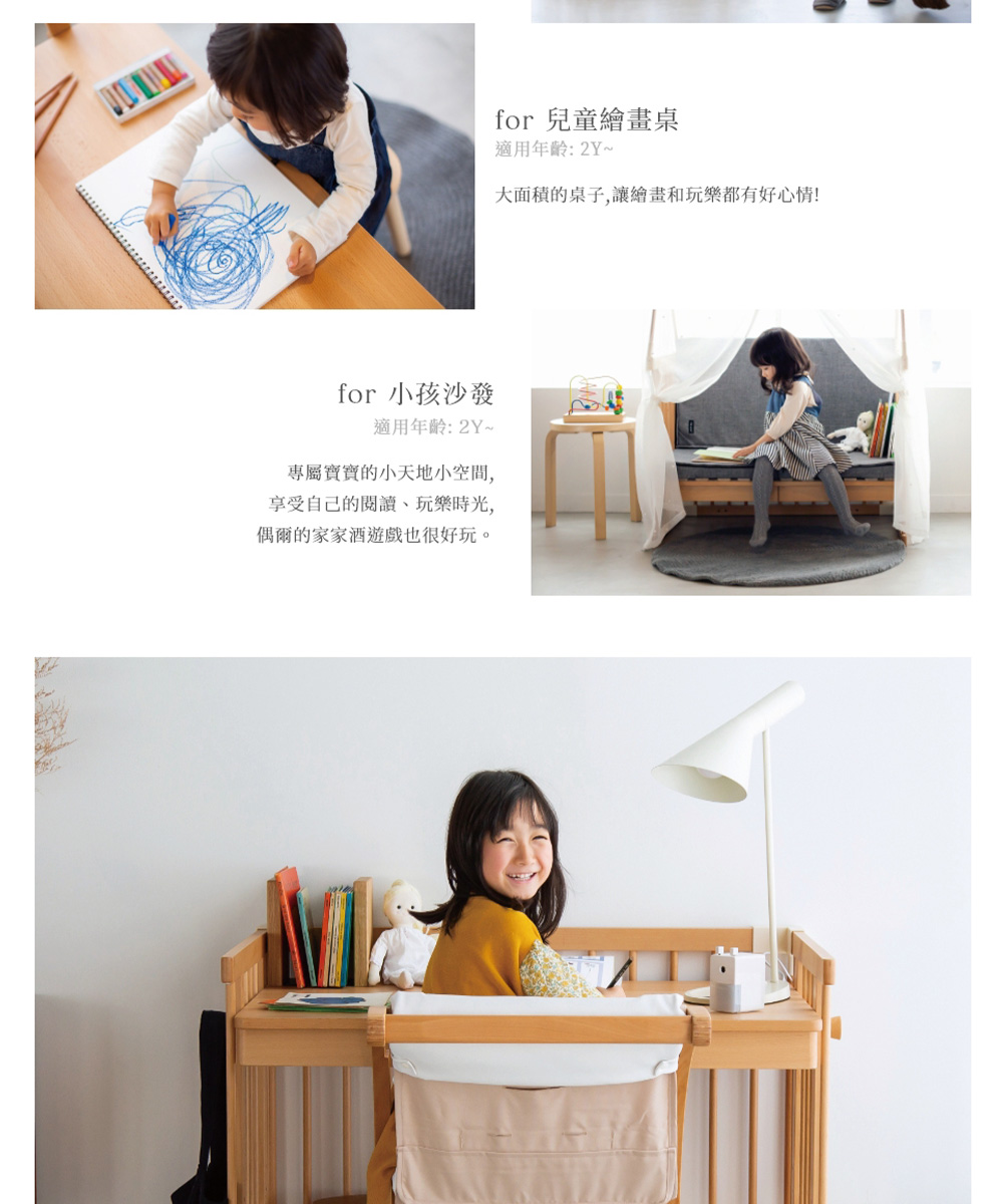 2. 1+4 種旗艦版使用方式,嬰兒床、圍欄、兒童繪畫桌、沙發、成人書桌,變化無需另購配件,隨貨全配到好。