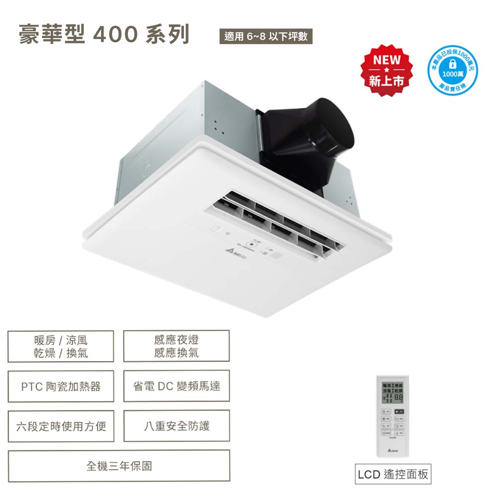 DELTA台達電子 豪華型400系列–多功能浴室廁所循環涼暖風機▲遙控型▲VHB40ADMRT-A//VHB40BDMRT-A