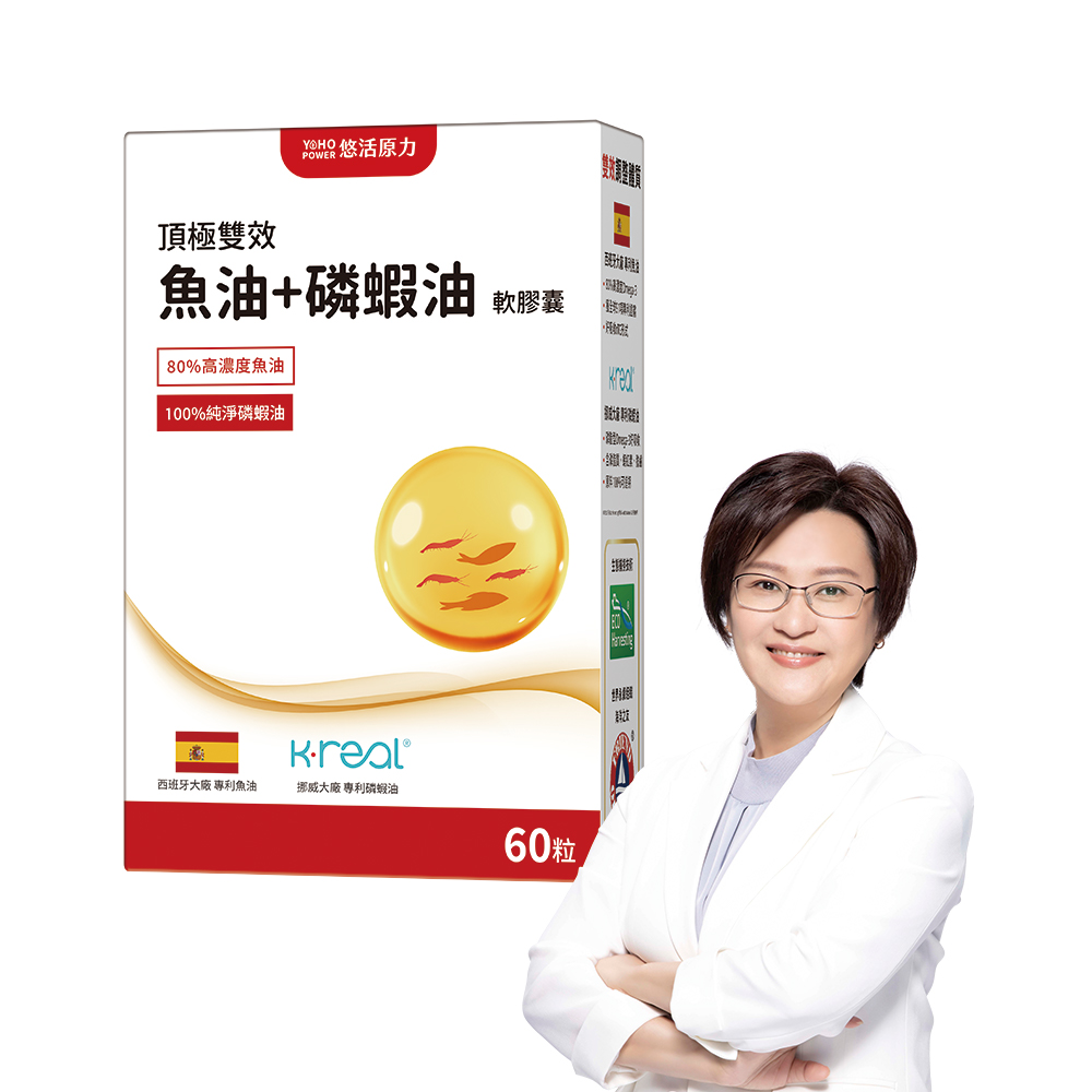 YohoPower 悠活原力 悠活魚油+磷蝦油軟膠囊(60入/盒)EPA DHA 蝦紅素 維生素E Omega3