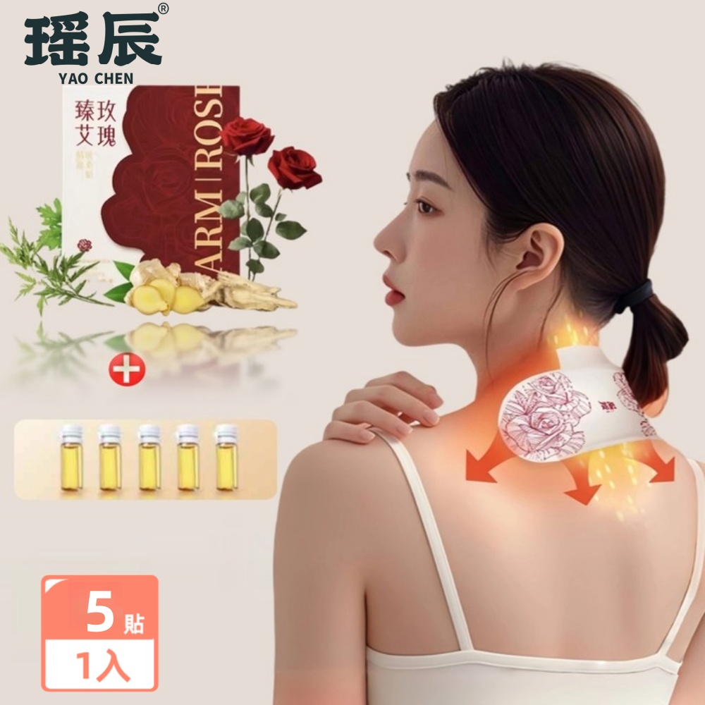 【YAOCHEN 瑤辰】5入組-玫瑰艾灸熱敷貼(護頸貼 暖頸貼 按摩貼片 暖身貼 暖寶寶)