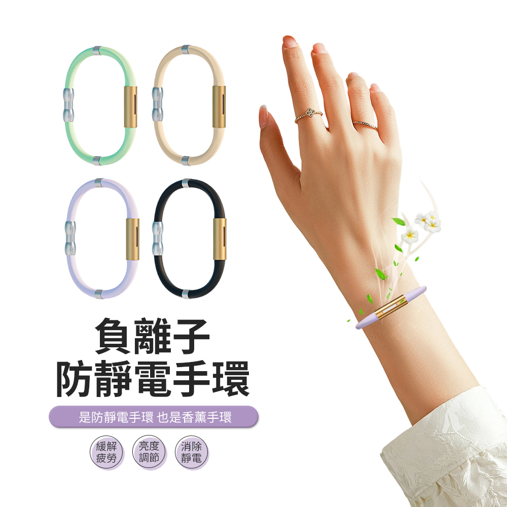負離子防靜電香薰手環 無線靜電消除器 矽膠運動腕帶(開門 握手 去靜電)