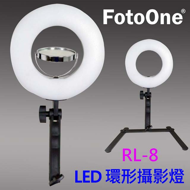 FotoOne RL-8可調亮度LED環形攝影燈環形臉書FB網路直播主播美容美髮紋鏽補光燈學校教學帶圓鏡