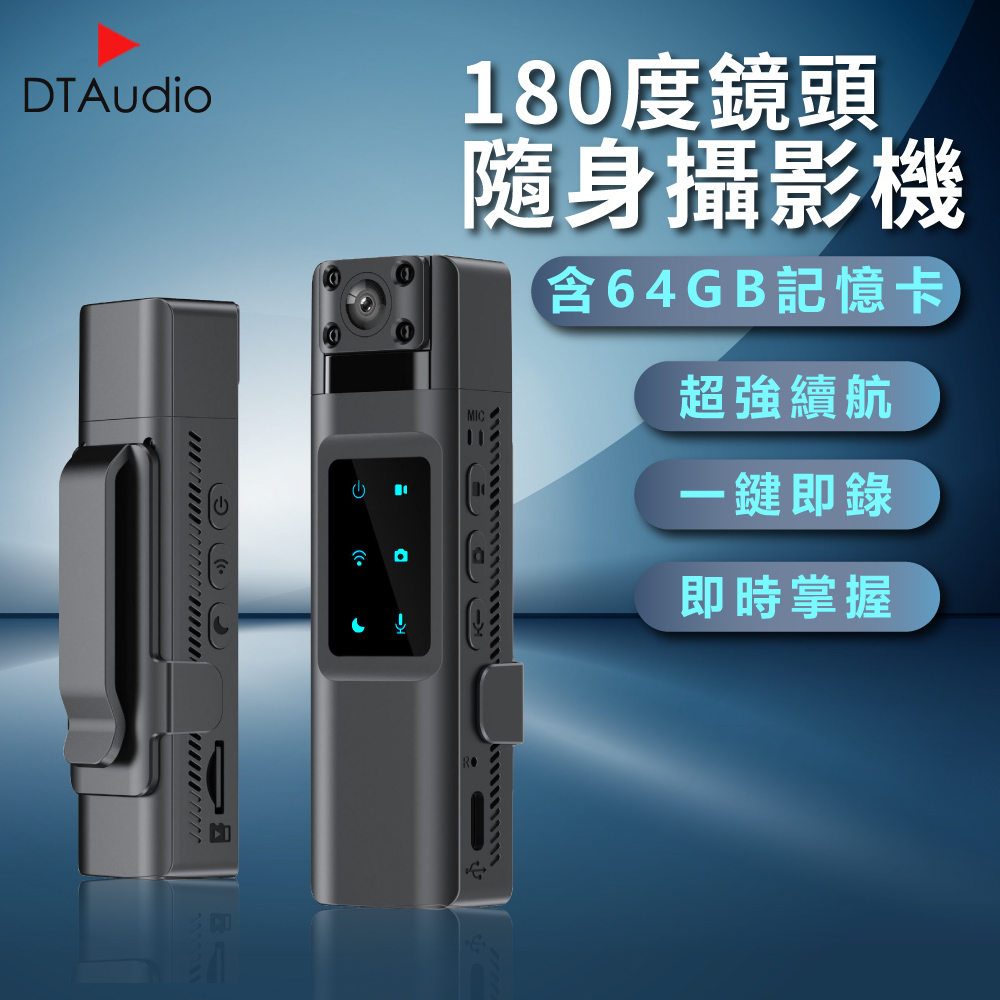 【含64GB記憶卡】180度鏡頭隨身攝影機 攝影機 監視器 攝像機 蒐證 夜視無光 便攜式密錄器