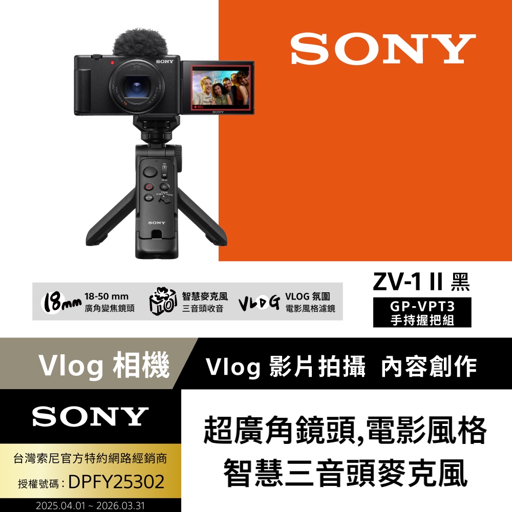 SONY索尼 ZV-1 II Vlog 數位相機 GP-VPT3手持握把組合 黑色