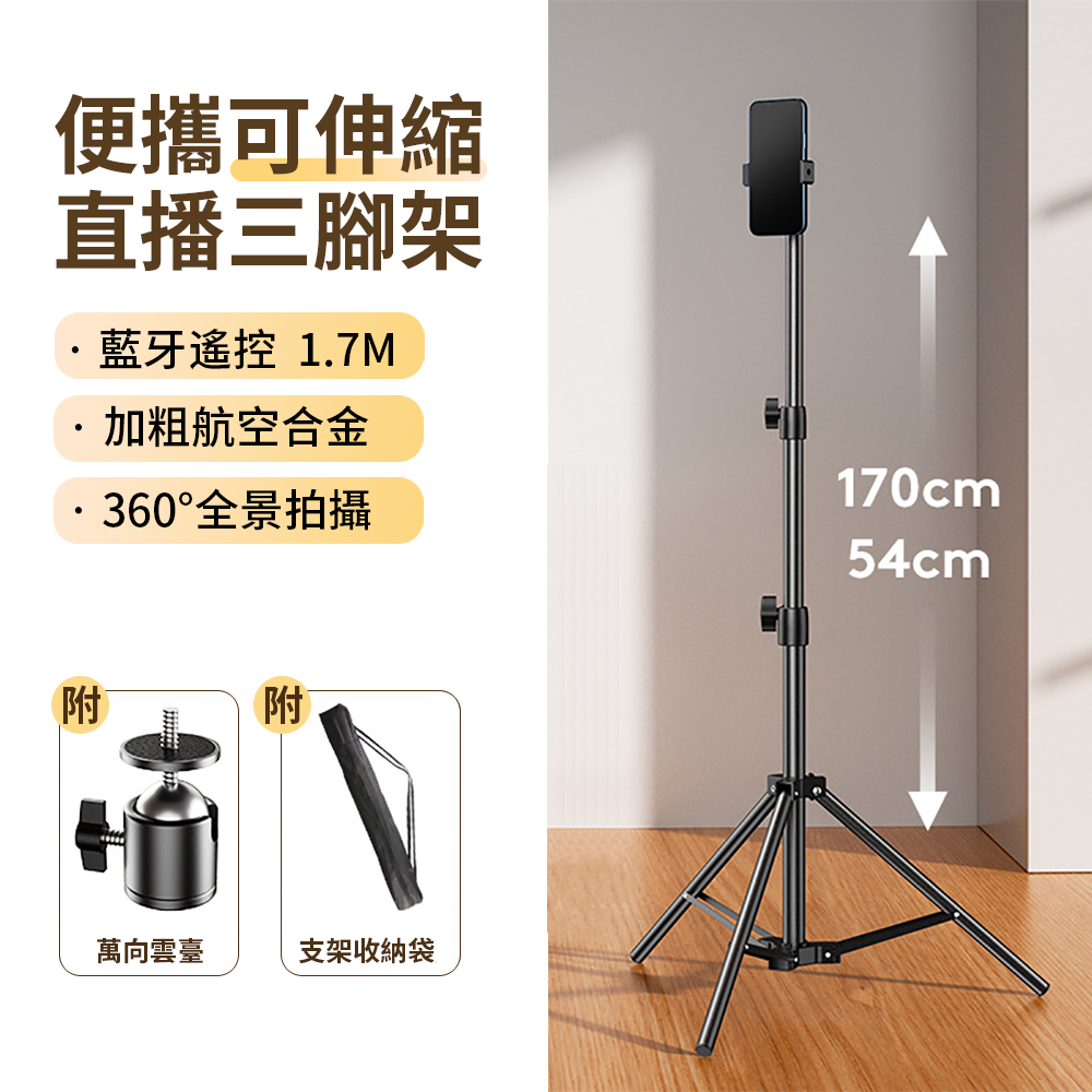 鋁合金伸縮直播自拍三腳架 手機自拍架 單反相機支架 1.7m 附藍牙遙控器+收納袋