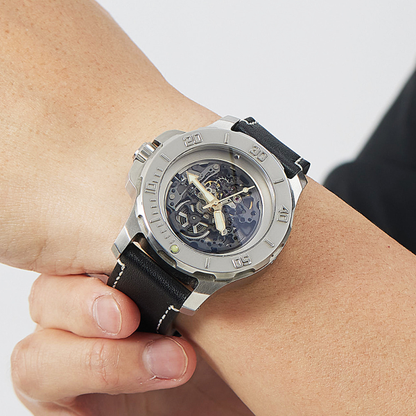 復古石紋面盤面盤設計、重潛頭盔設計理念、鏤空機械錶背