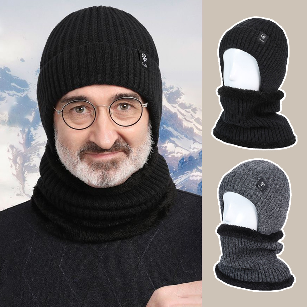 TLYS-J 加厚加絨保暖圍脖毛線帽 包頭毛帽 護耳防寒針織帽 套頭帽 防風禦寒 中老年人保暖毛線帽 母親節禮物
