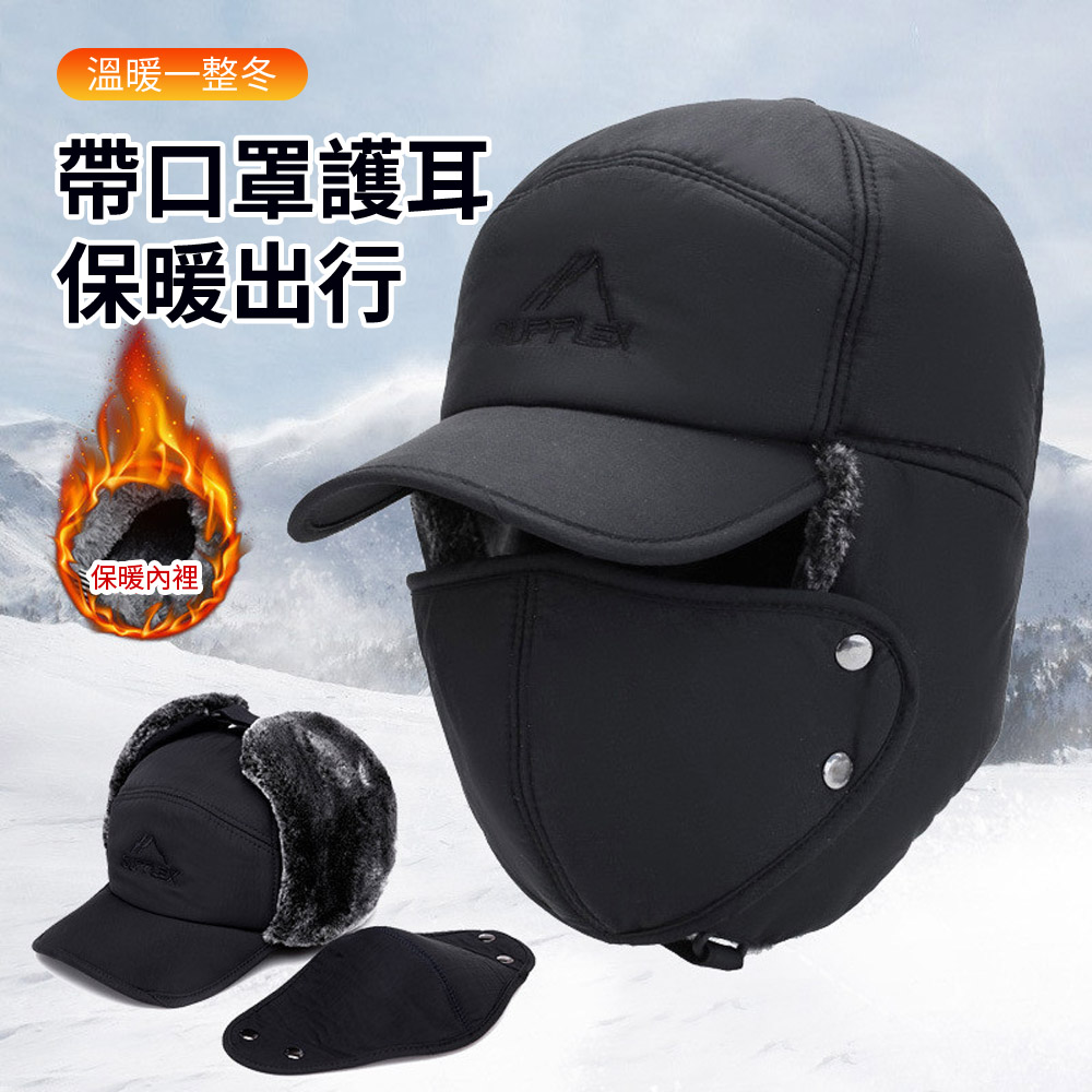 Chewy 中老年人加厚絨毛雷鋒帽 防風護耳冬季針織毛帽 冬季騎車登山滑雪帽子(護耳帽 禦寒帽 保暖口罩)