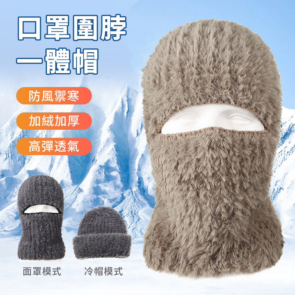 Ellea 帽子口罩圍脖一體帽 巴拉克拉法帽 防寒保暖護耳帽子 加厚加絨毛線帽 毛線套頭帽 針織帽 毛帽