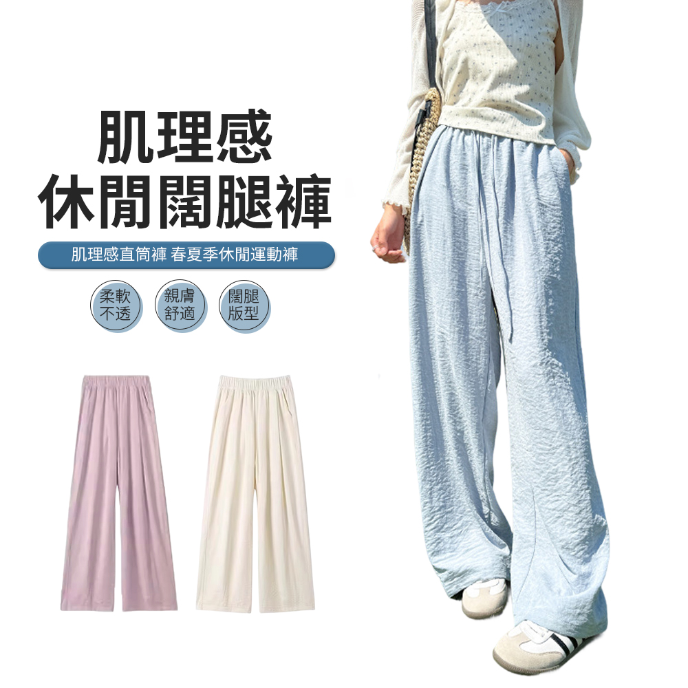 高腰垂感奶皮褲 闊腿褲 春夏季寬鬆休閒運動褲 透氣機能褲