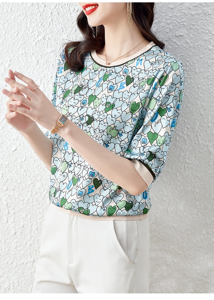AKARA 氣質出眾韓版心朵朵雪紡五分袖上衣 (春秋 3XL有做 修身剪裁 中大尺碼)