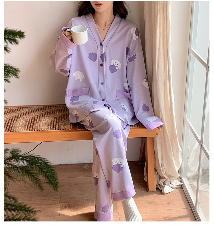 AKARA 好眠睡衣寬鬆穿葡萄紫長袖長褲連扣襯衫(秋冬 3XL有 寬版剪裁 中大尺碼)