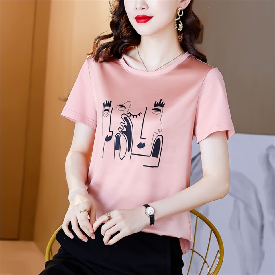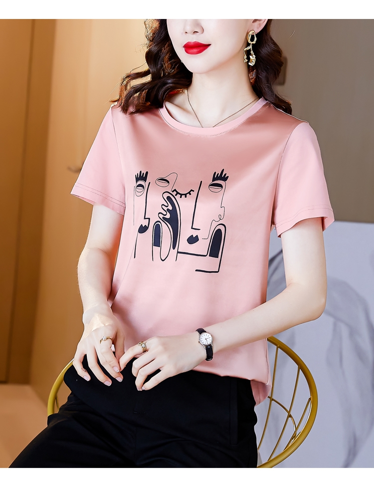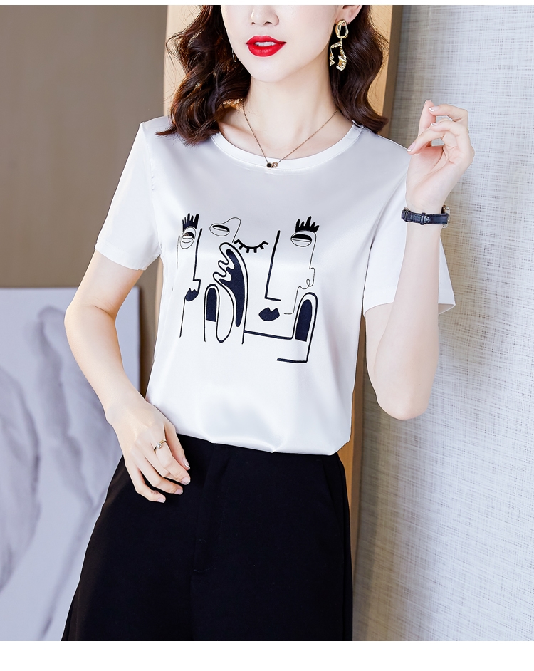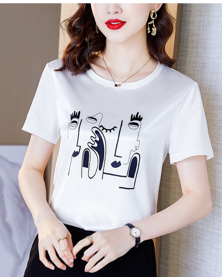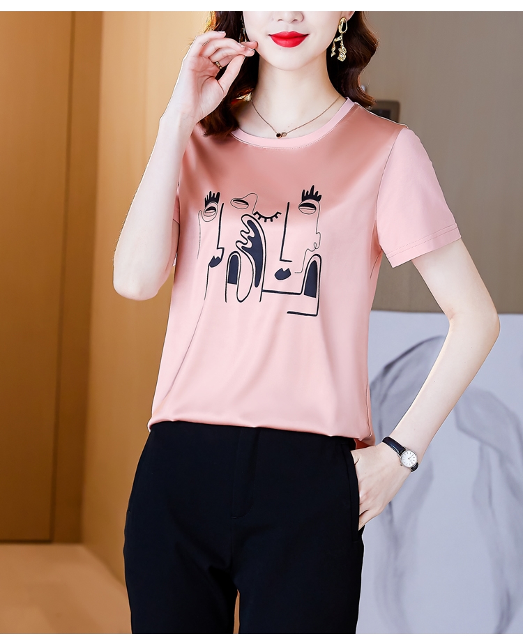 AKARA 畢卡索緞面真絲涼感都會風格短袖T恤上衣 (春秋 2XL有做 修身剪裁 中大尺碼)