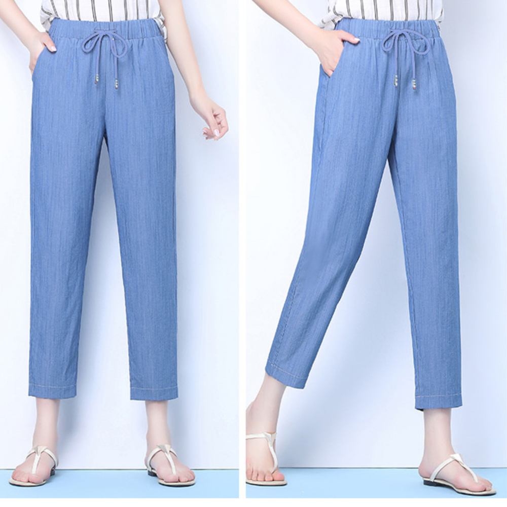 AKARA 買一送一 兩件組**顯瘦涼感冰絲牛仔藍九分褲