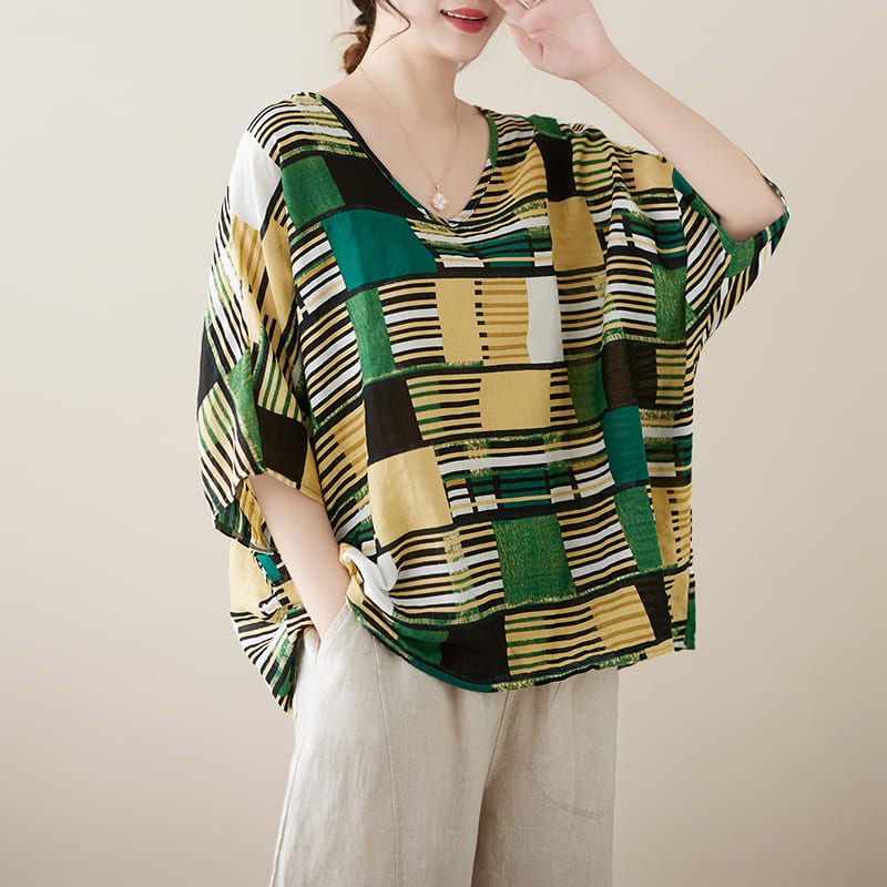 AKARA 自然棉麻手感藤蔓五分袖上衣 3XL可(涼感 棉麻 中大尺碼)