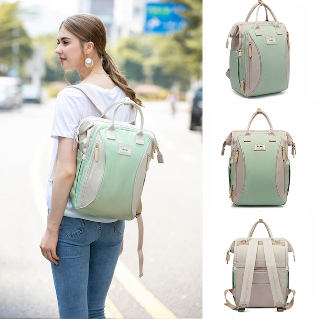 Heine 海恩 WIN-215果綠象牙白後背包 多口袋大容量媽媽包 新手媽媽包 月子禮物 收納款背包 防潑水防盜女包 包包