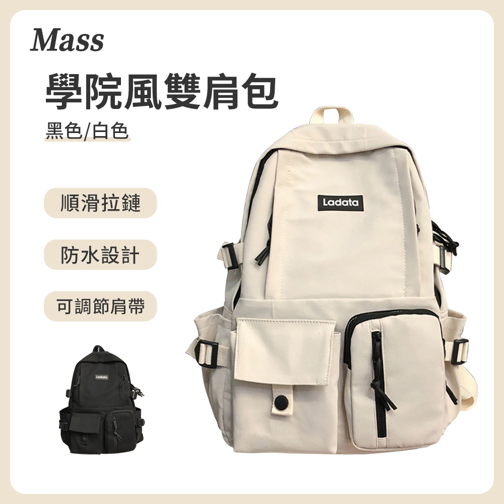 Mass 輕量防潑雙肩後背包 多功能尼龍電腦背包(大容量/學院風)原宿風雙肩外出後背包 |開學必備