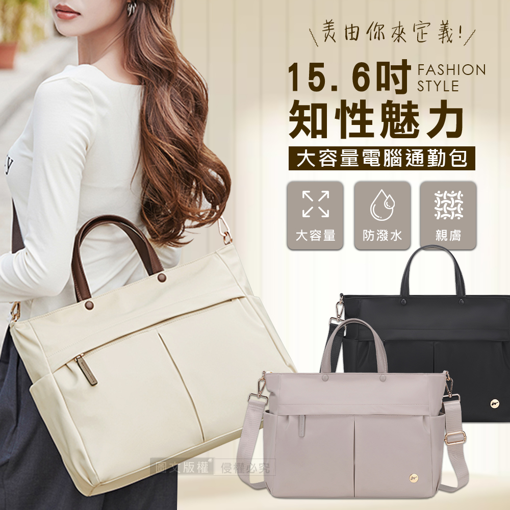 知性魅力 15.6吋 大容量多格層電腦包 防潑水獨立筆電層 斜背手提公事包