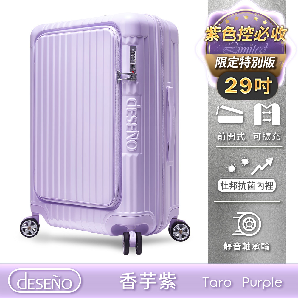 Deseno 笛森諾 尊爵傳奇V 29吋前開式拉鍊行李箱-香芋紫 ★可加購專屬箱套★