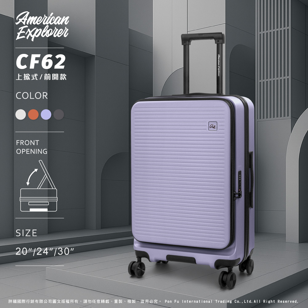 American Explorer 美國探險家 20吋+24吋 CF62 前開 行李箱 上掀式 可加大 PC箱 登機箱 雙排靜音輪 防爆拉鍊 TSA鎖 大容量 兩件式