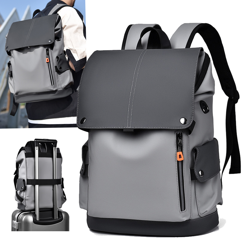Starshop 大容量商務後背包 PU皮革筆電包 15.6吋 電腦雙肩包 書包 男包 旅行/出差必備