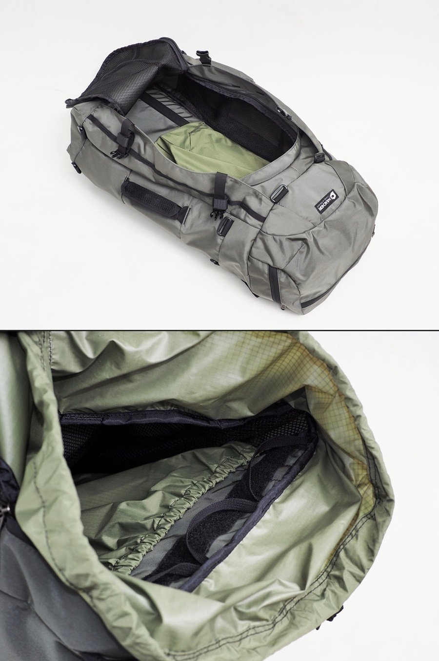 前方頂部雙開口設計:能夠有一般背包的上方壓縮收納,同時具有行李箱般攤開分類取物的機能。