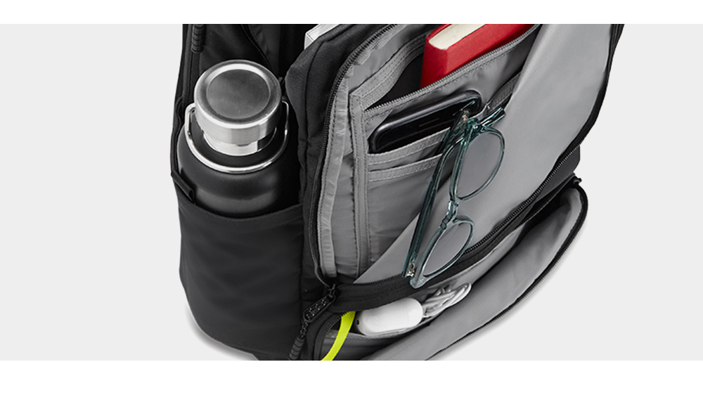 前側拉鍊隔層輕鬆放入隨身小物,兩側彈性水瓶口袋更貼合日常使用需求,保持裝備井然有序。細節設計貼心實用,背帶上的開瓶器增添生活小確幸。