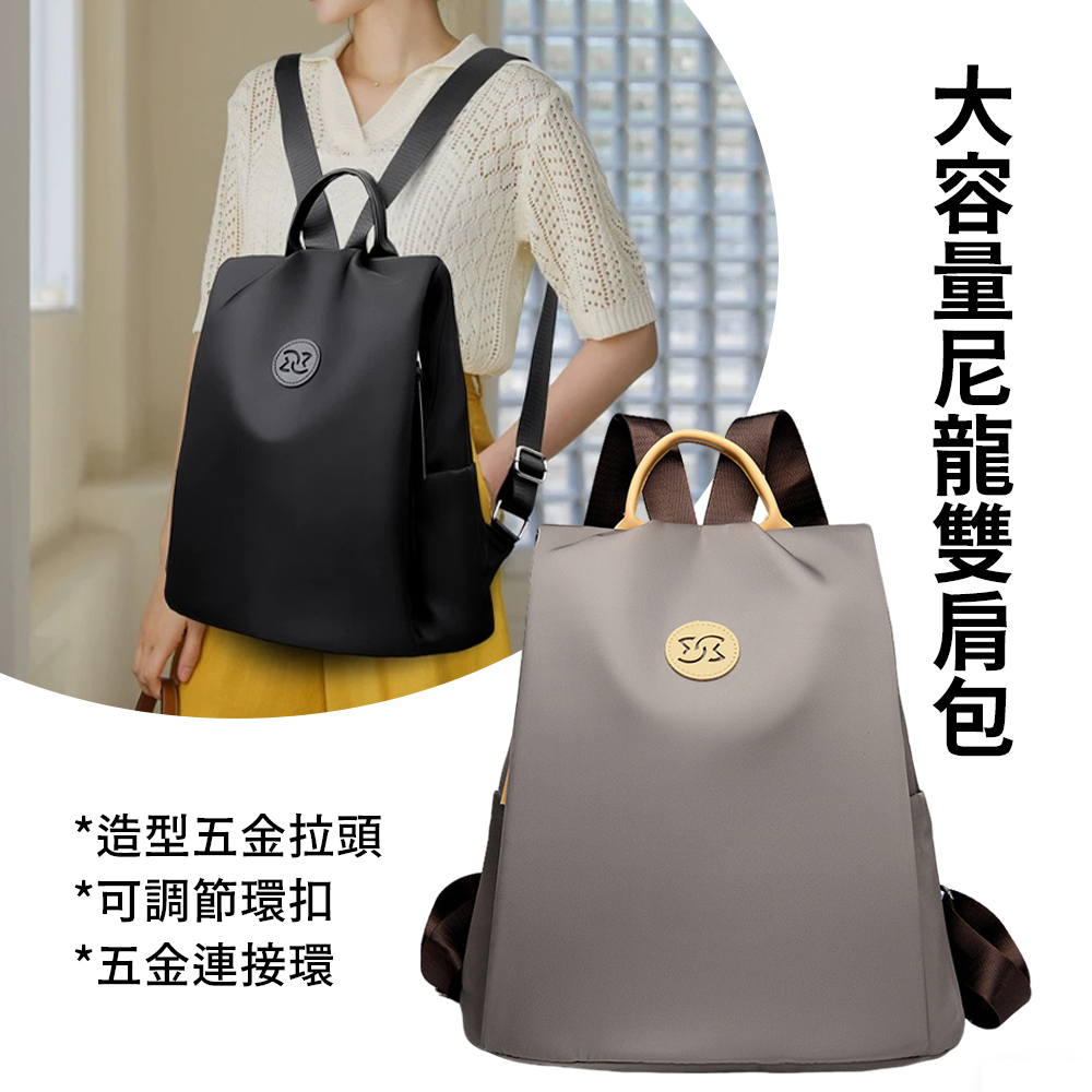 簡約休閒防盜尼龍後背包 耐磨防潑水雙肩背包 通勤旅遊多隔層防水女士包包 女包