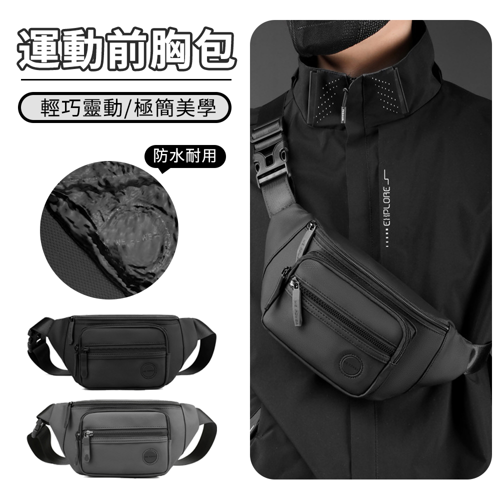 BAY 男士機能公事斜挎包 尼龍防水斜背包 戶外運動跑步手機腰包 大容量前胸包 側背包 單肩包