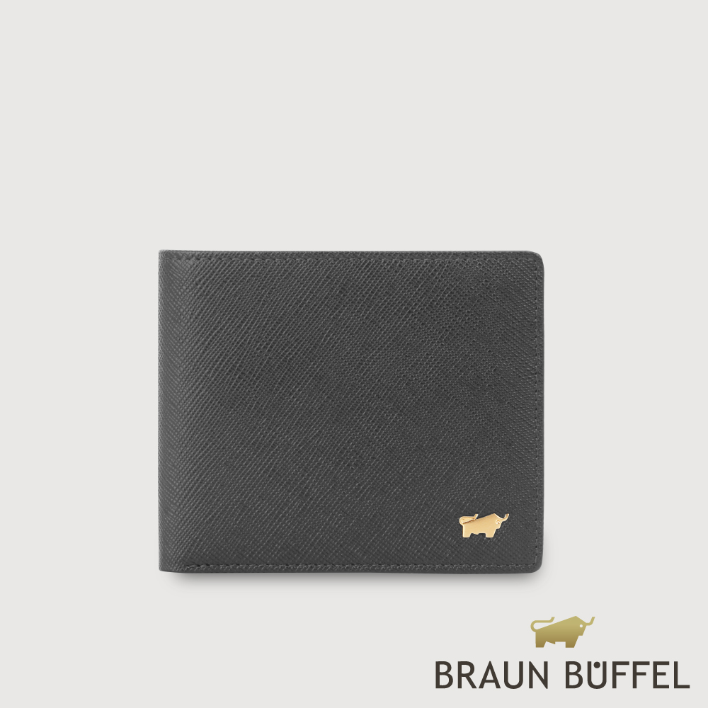 【BRAUN BUFFEL 德國小金牛】台灣總代理 尚恩A 8卡皮夾-黑色(金色LOGO款)