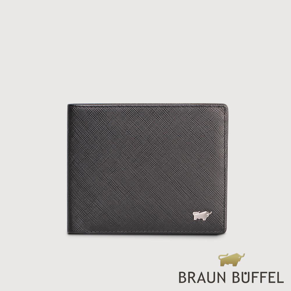 BRAUN BUFFEL 德國小金牛 台灣總代理 尚恩A 8卡中間翻零錢袋皮夾-黑色/BF354-318-BK