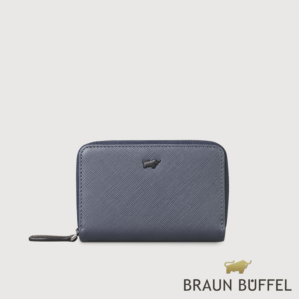 BRAUN BUFFEL 德國小金牛 台灣總代理 洛菲諾P-II 雙層拉鍊零錢包-藍色/BF347-161A-NY