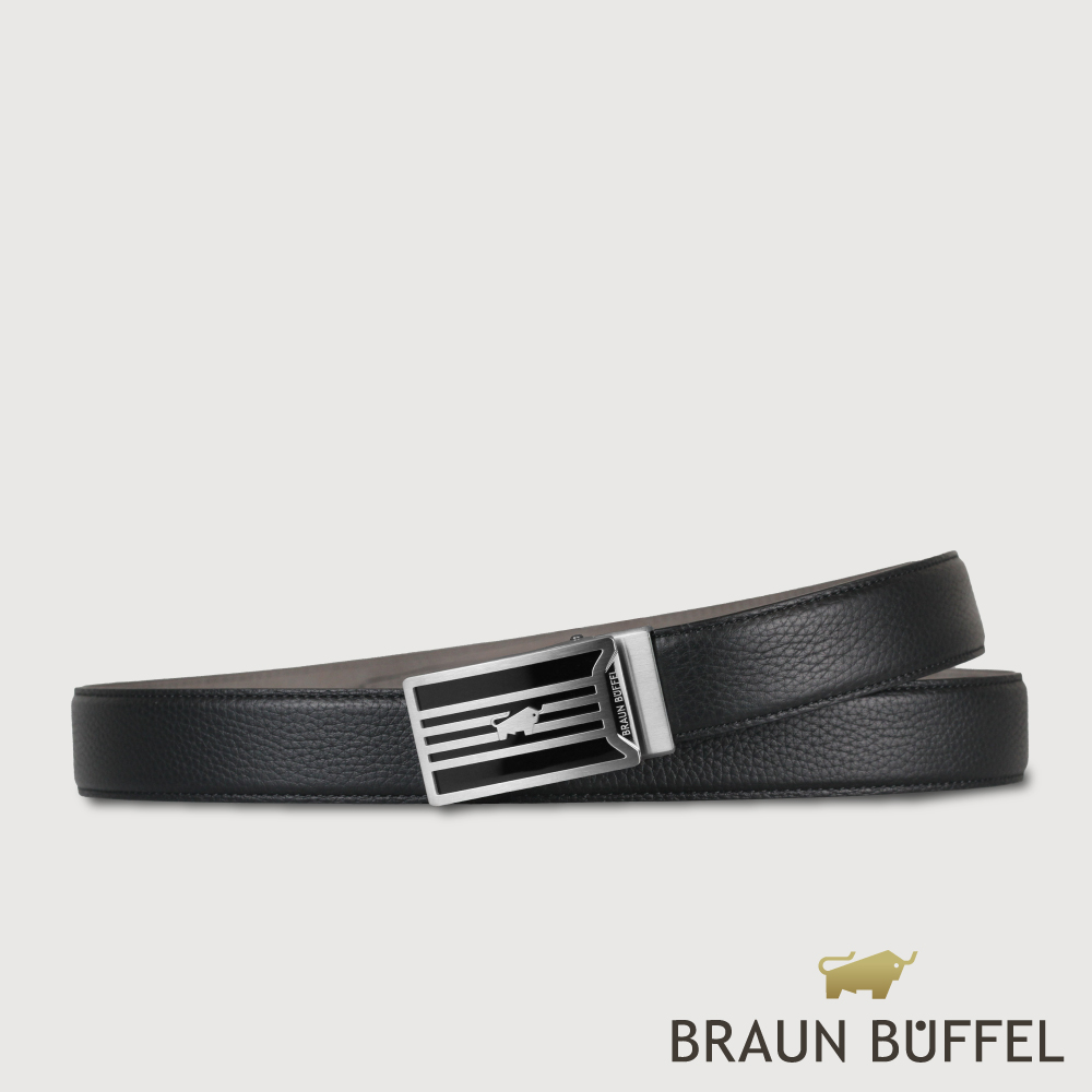 【BRAUN BUFFEL 德國小金牛】台灣總代理 時尚紳士 條紋設計自動扣皮帶-銀色