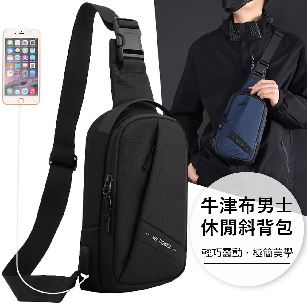 Kyhome 牛津布男士休閒斜背包/胸包 USB充電側背包 輕便潮流單肩包