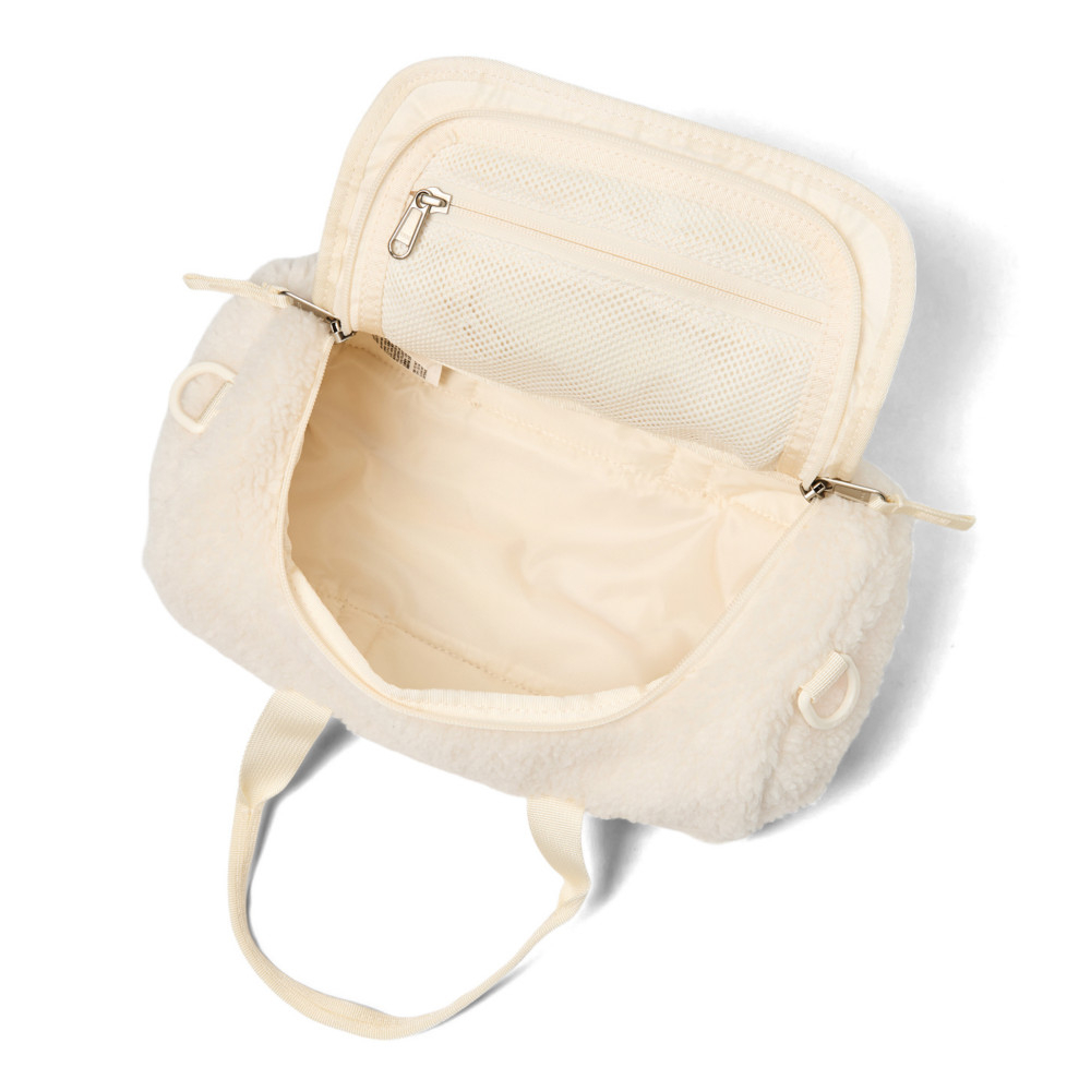 - 可拆卸肩帶設計安全拉鏈網袋高蓬鬆抓絨面料