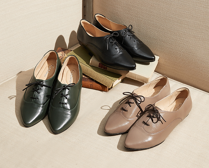 karine (MIT台灣製)全真皮尖頭綁帶內增高德比鞋-黑色