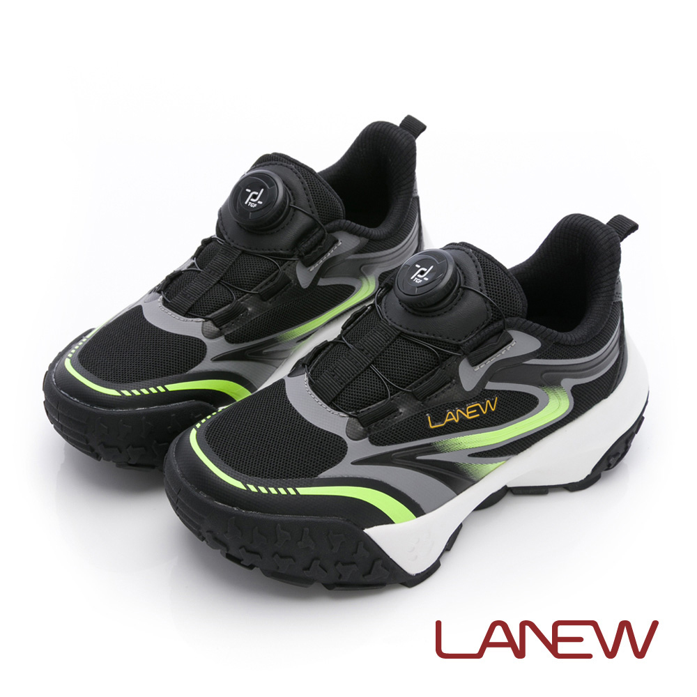 1.穿上鞋後,將旋轉釦按下扣住