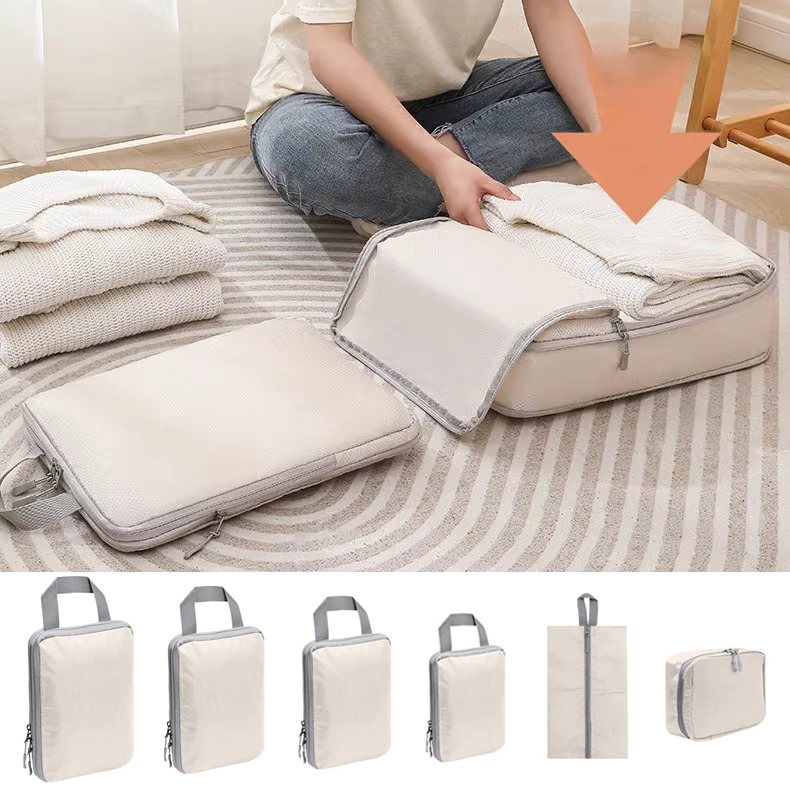 Flymate 壓縮旅行收納袋六件組 衣物收納包鞋袋盥洗包化妝包 機能防潑水抗皺 行李箱分類旅遊壓縮袋