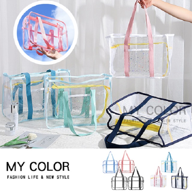MYCOLOR 大容量透明沙灘包 手提袋 防水包 透明手提包 【S008-1】