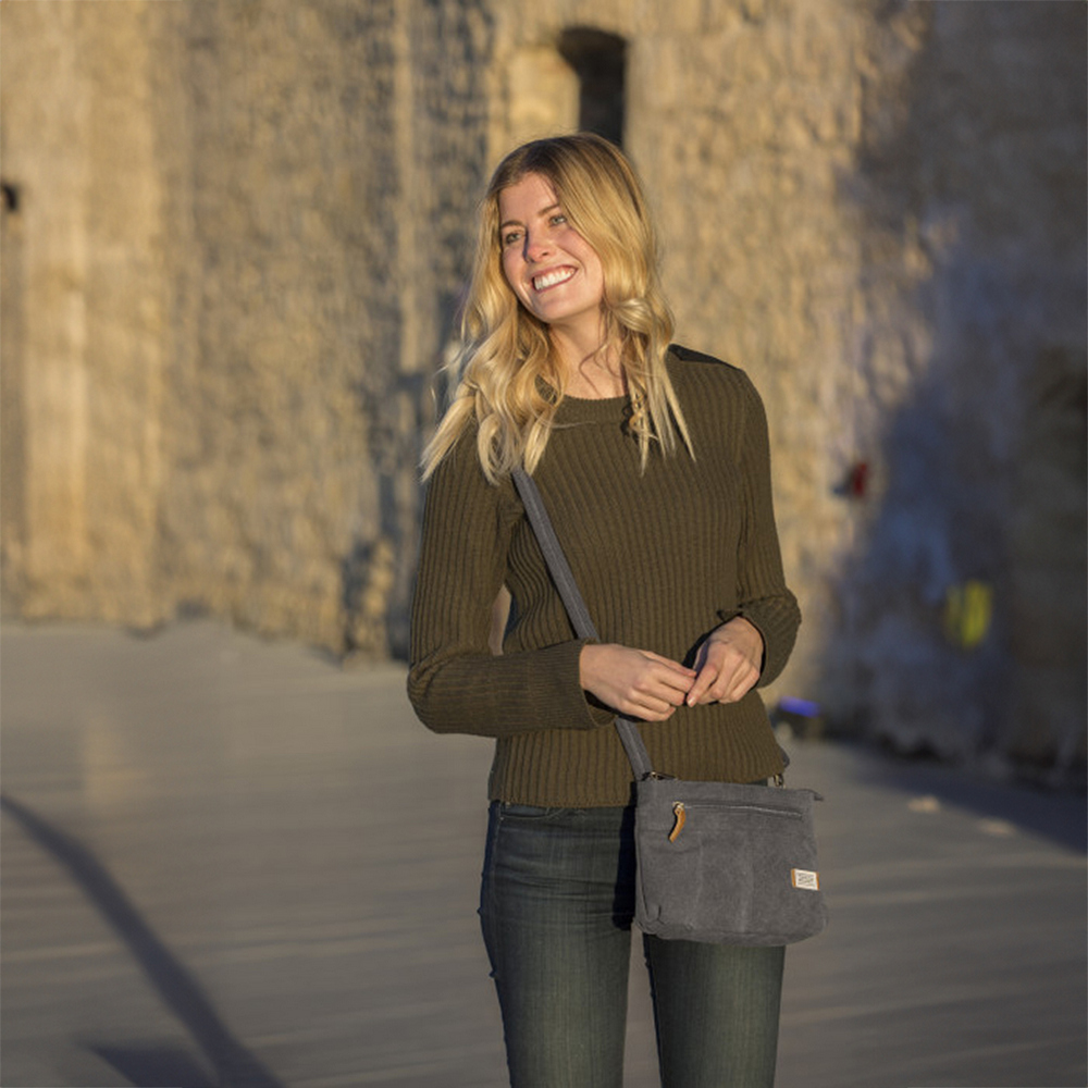 TRAVELON 美國 三層防盜斜背包(牛仔灰) / 側背包 斜背包 背帶包 防割防搶