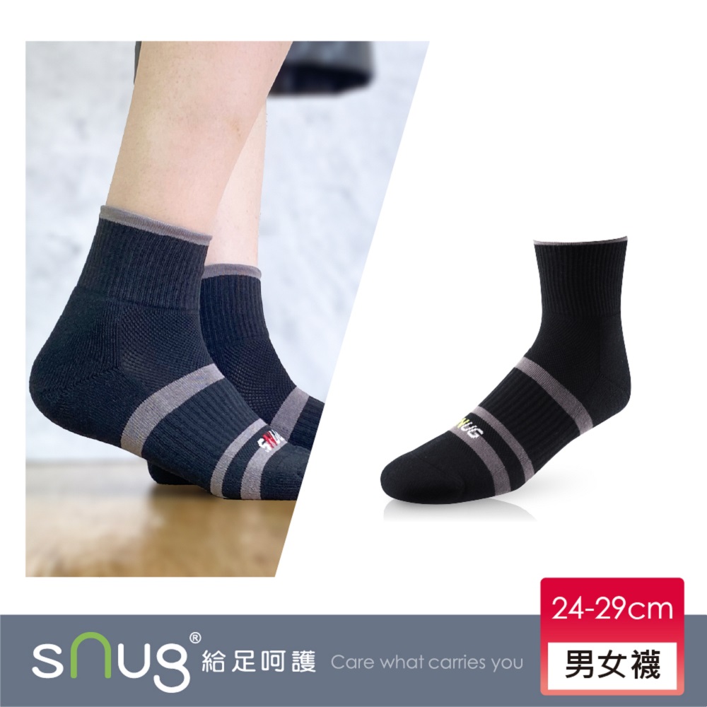 sNug 給足呵護 動能氣墊運動除臭襪-線條黑灰