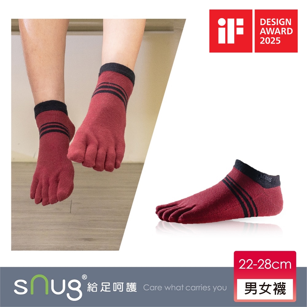 商品:【sNug】健康五趾船型襪-棗紅色