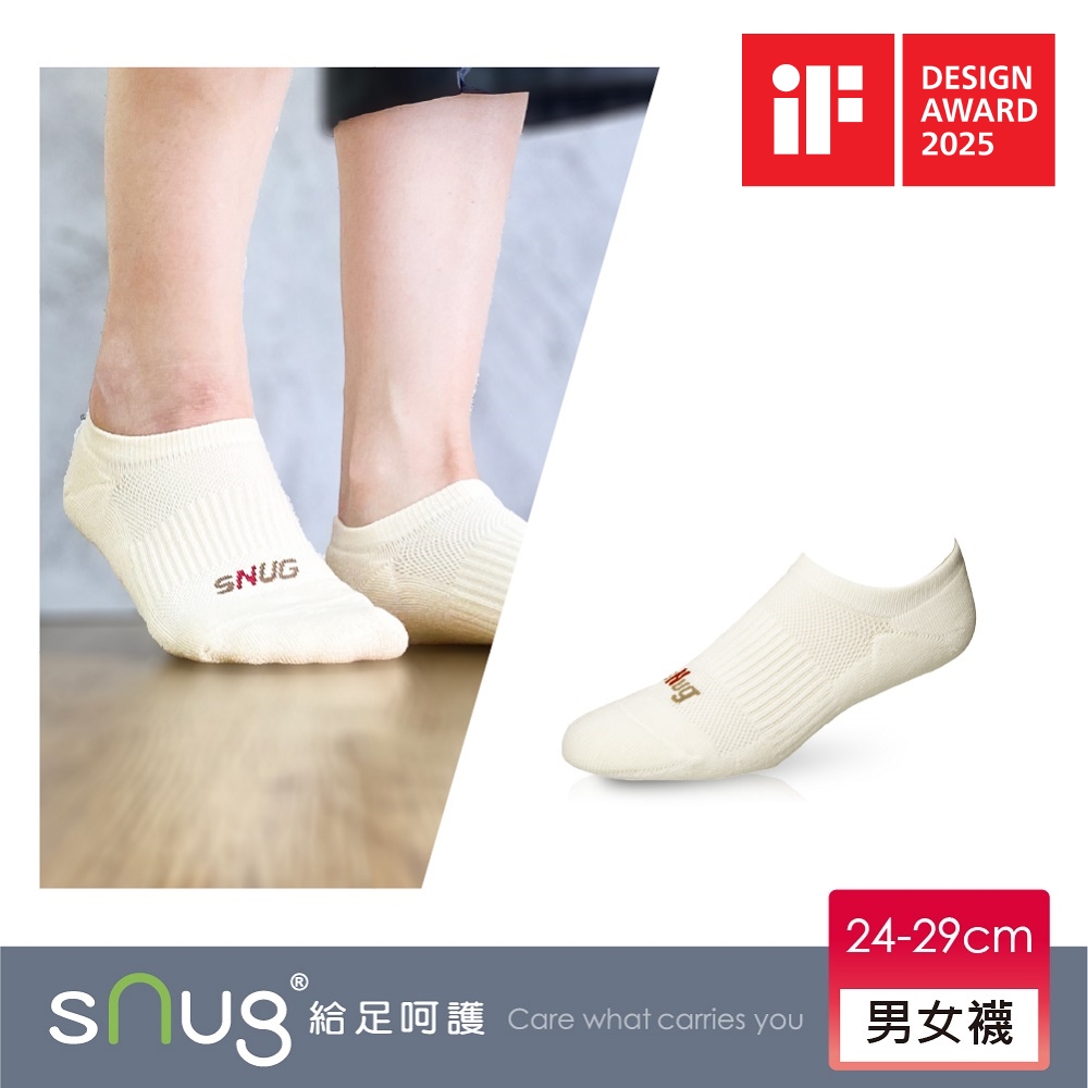 sNug 給足呵護 氣墊運動船型除臭襪-米白色