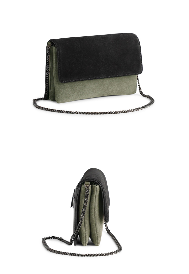 MARKBERG Arlette 丹麥手工牛皮率性鍊帶拼接肩揹包 斜背包 側揹包 (蘆葦黑)
