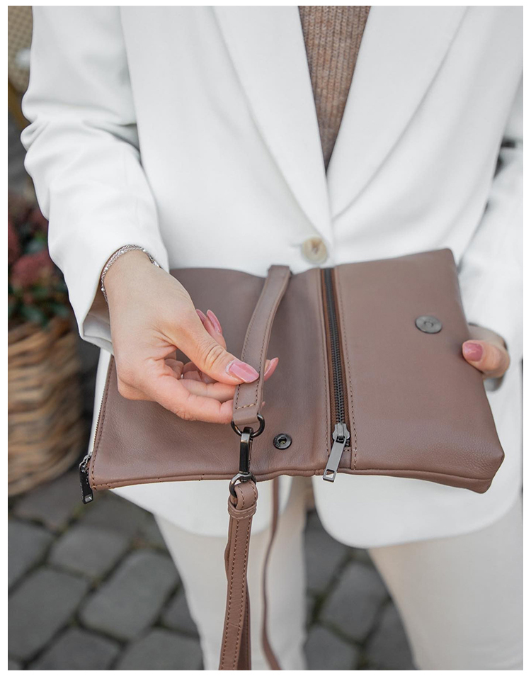 Augustine 丹麥手工牛皮時尚紋樣反折肩揹包 斜背包 側揹包 手拿包 (可可裸)
