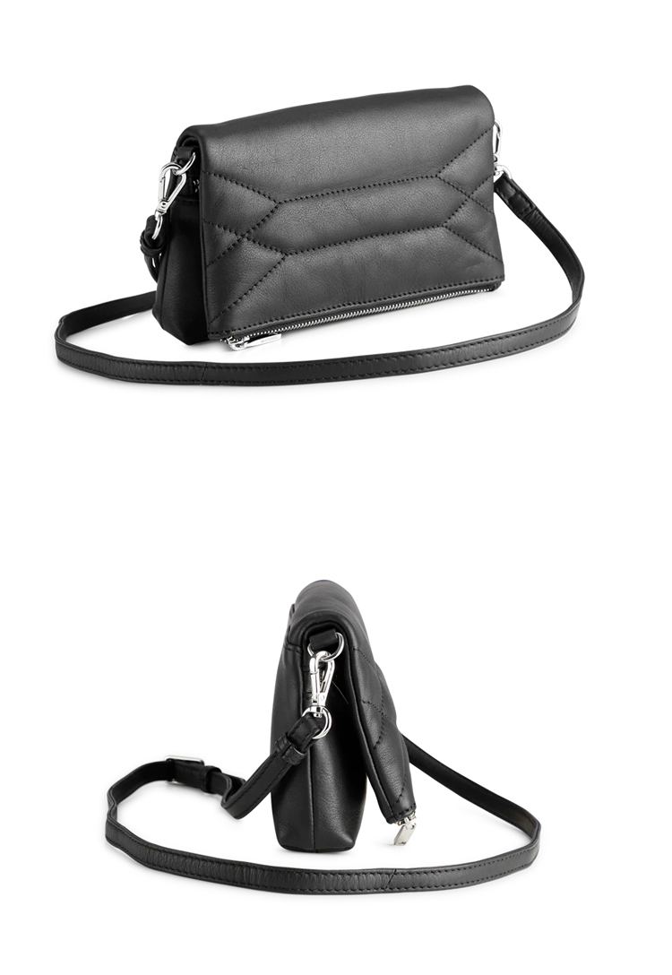 Augustine 丹麥手工牛皮時尚紋樣反折肩揹包 斜背包 側揹包 手拿包 (極簡黑)